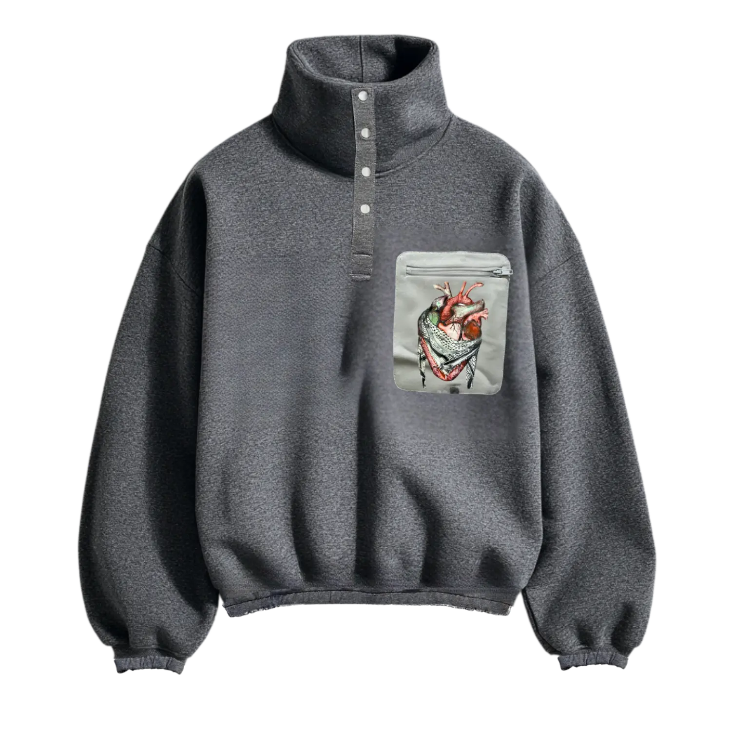 Sweat-shirt col cheminé à boutons et poche Kaffiyeh beats